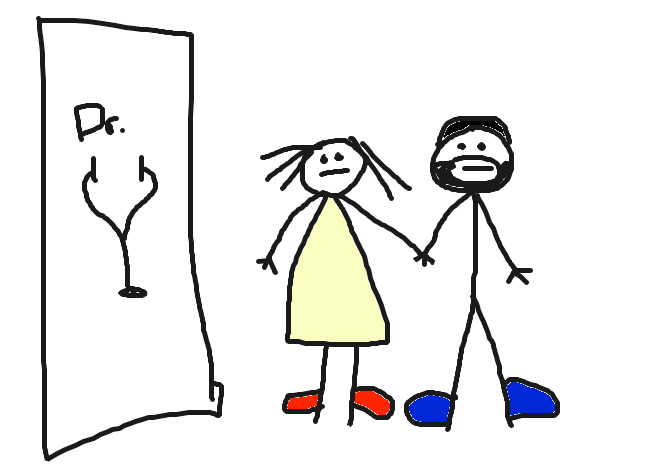 The doctor is late. We start to wonder if we are in the wrong place, if I’ve misunderstood the receptionist’s explanations about where to go or otherwise done something wrong. This doesn’t help alleviate the stress.