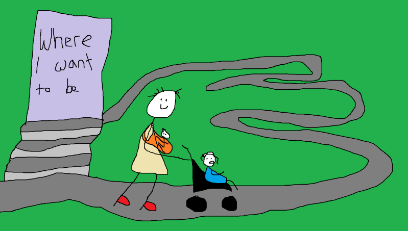 I was in my Sainsbury’s local this evening where the women on the checkouts were discussing a new queuing system whereby people with prams would have to go around if another buggy user was already there because there would be no way to pass otherwise. One of the women commented that it seemed unfair that people with buggies have to go all the way around and I smiled and told her that parenting was all about taking the long way round.