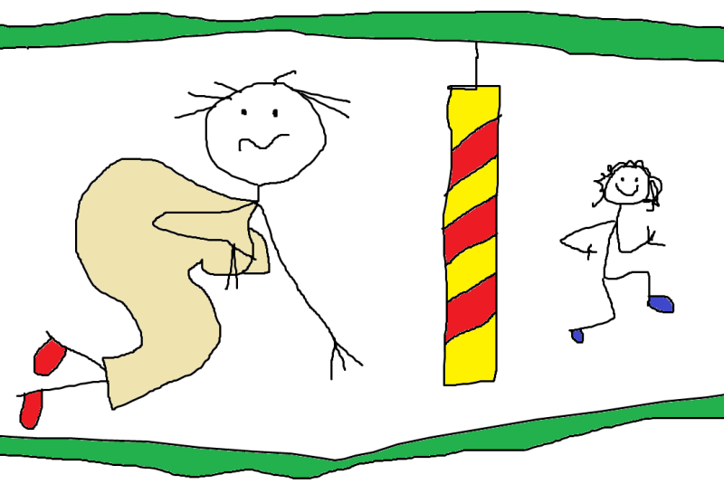 I’m not a masochist so I get the bib ready for the child, she points out mummy needs her bib. Drat. Bib, or apron rather, is in the kitchen. I am physically incapable of hoisting her on my shoulders again and what’s more the bib is at a level that will cripple me for an eternity if I have to contort myself down for her to be able to pick up while still atop of my shoulders. I look nervously at the child and the contents of the table but decide to chance it. ‘Don’t touch anything’ I tell my progeny. Quick as a flash I whip to the kitchen grab the apron, try not to curse as the strings get tangled in some utensils, and run back to the table. I can’t have been gone more than a minute.